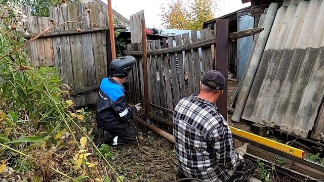 Строительство забора из металлических труб в нашем огороде . Часть - 3 .