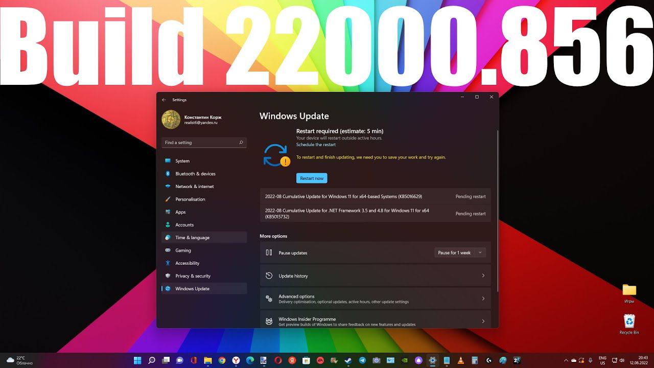 Внимание ! Вышло обновление Build 22000.856 для Windows 11