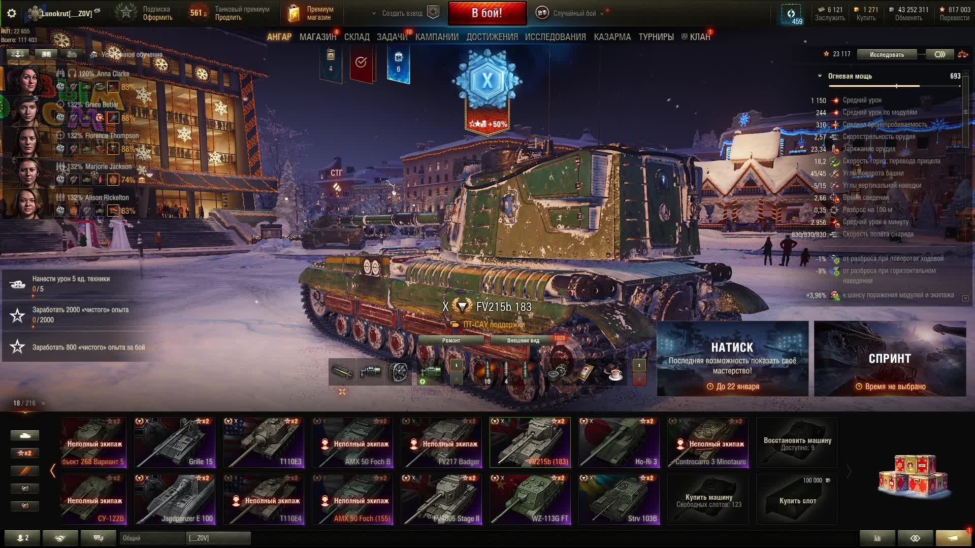 Мир танков - ФВ 215Б 183 Надо добить до 85%)