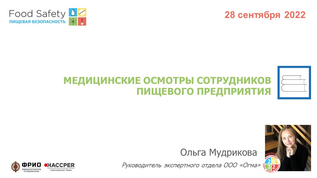 Ольга Мудрикова, руководитель экспертного отдела ООО «Огма», лауреат премии Food Safety Awards рассказывает о том, как и когда проводятся медицинские осмотры, каковы условия допуска работника на производство и как он организуется.