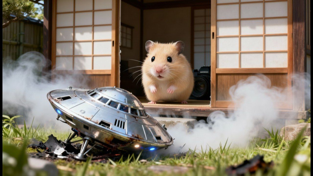 олотистый хомячок Моника отправляет потерявшегося пришельца обратно в космос