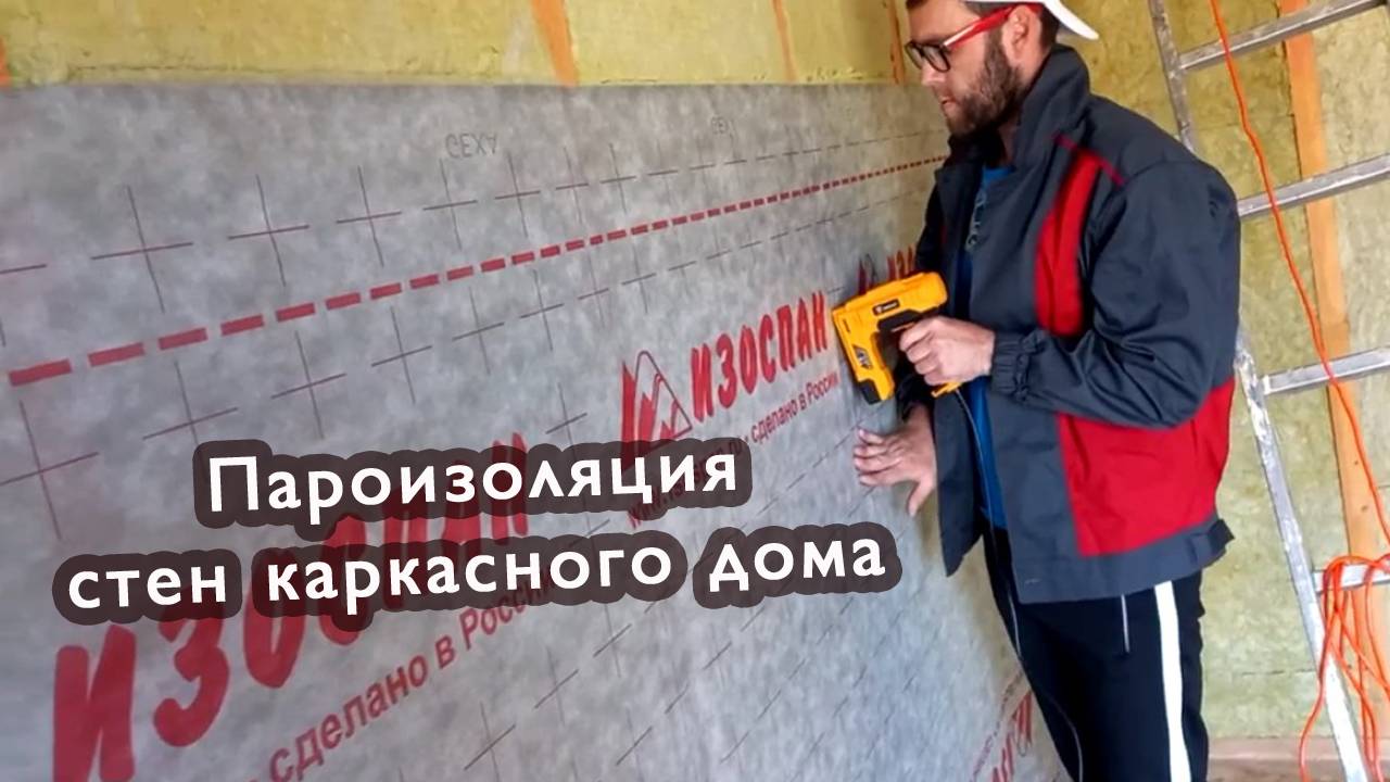 Монтируем пароизоляцию на стены. Сын приехла на помощь