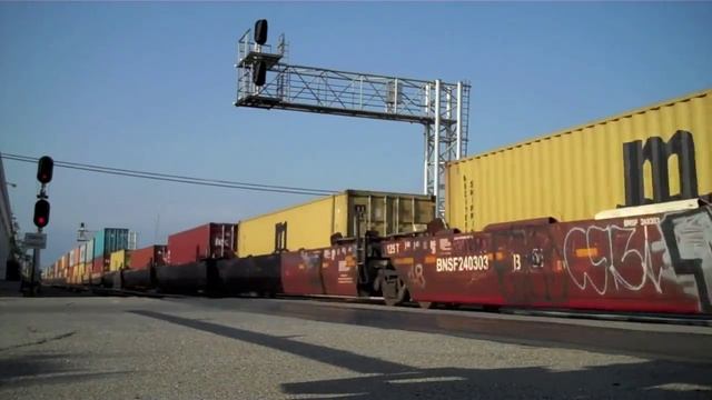 Сцеп из 7 красивых тепловозов тащат тяжелый товрный и грузовой поезд по железнодорожной сети