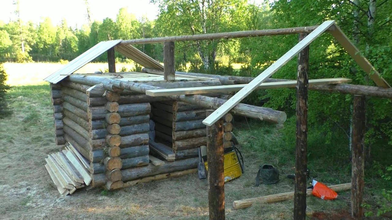 Строительство базового промыслового зимовья продолжается. Стены сруба возведены , стропиловка поставлена , крыша сделана, остаются в основном внутренние работы.