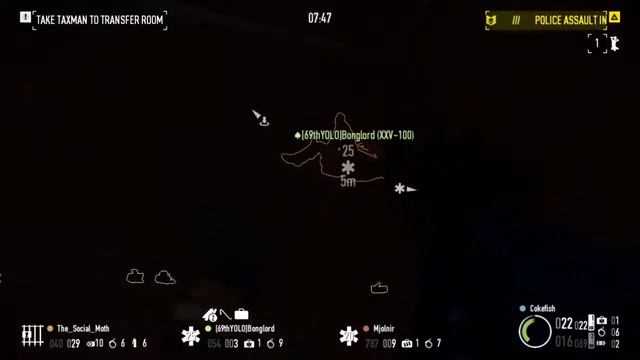 The mission where you strap the Taxman to a chair and force him to provide access to an IRS server. The crime spree rank here was 174, which isn't that high. Once I find a pub with a rank of 200+, I'll record and publish the footage. As for the loadout, I'm running a Rogue dodge loadout with 23 detection rate. The primary is a CAR-4 with DMR kit, and the secondary is a Krobus 90, which is an amazing SMG for the concealment it has. I'm rather weak against shields, so I run away from them quite a lot. On the other hand, I actively hunt for Dozers, given my primary does 218 damage, firing 600 rounds per minute.