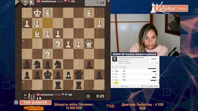 2х часовая арена по 3 минуты. Поддержать канал: https://www.donationalerts.com/r/karinachess1 Подписаться на мой канал: https://www.youtube.com/channel/UChor8u_hhgrjX2lt0QLzZHA?sub_confirmation=1 Рестрим: https://www.twitch.tv/karinachess1 Рада приветствовать Вас на канале женского международного гроссмейстера, международного мастера Карины Амбарцумовой! Я - профессиональная шахматистка и тренер. Здесь вы сможете найти обучающие видеоуроки по шахматам, комментарии турниров, стримы моей игры в блиц шахматы. Подписывайтесь на мои странички в соц.сетях: ВКонтакте: https://vk.com/karinachessclub Twitch: https://www.twitch.tv/karinachess1 Почта для связи: karinachess@mail.ru Поддержать канал: https://www.donationalerts.com/r/karinachess1 Мой сайт: http://chesscoach.ru/