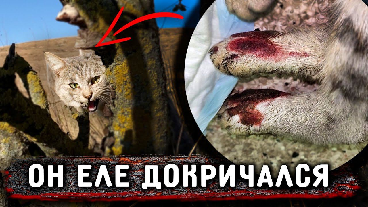 Оголодавший кот инвалид, совсем один в полях, кричал со всех сил, что бы его заметили.