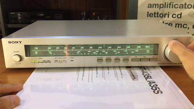 Questo Sony ST A35L è un tuner analogico stereo commercializzato all'inizio degli anni ottanta. Si tratta di un apparecchio ben costruito che annovera tra le sue "feature" l'Acute Servo Lock System. In pratica è un circuito che facilita la ricezione stabile in FM. Quando una stazione FM viene raggiunta questo sistema si attiva per sintonizzare in maniera corretta la stazione e poi la blocca. Ogni leggero movimento della manopola, cambiamento della temperatura esterna o interna dell'apparecchio non influenza la ricezione che rimane stabile e, appunto, bloccata. Sul frontale troviamo i led di indicazione del livello del segnale e della ricezione in stereofonia. Tra le funzioni disponibili è da segnalare il CAL TONE per generare un tono a 400Hz in uscita atto alla corretta calibrazione dei registratori o altri apparecchi. Molto suggestiva la retrolluminazione della scala parlante al buio.