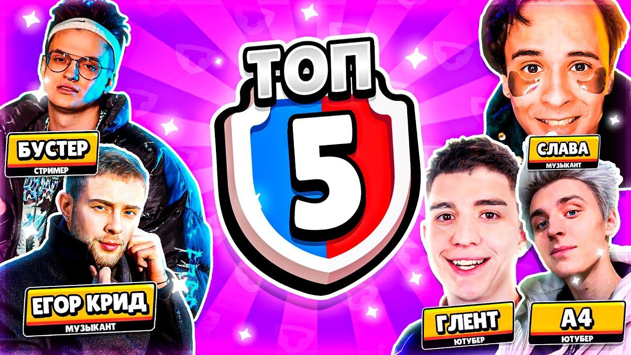 ТОП 5 ЗНАМЕНИТОСТЕЙ ИГРАЮЩИХ В БРАВЛ СТАРС