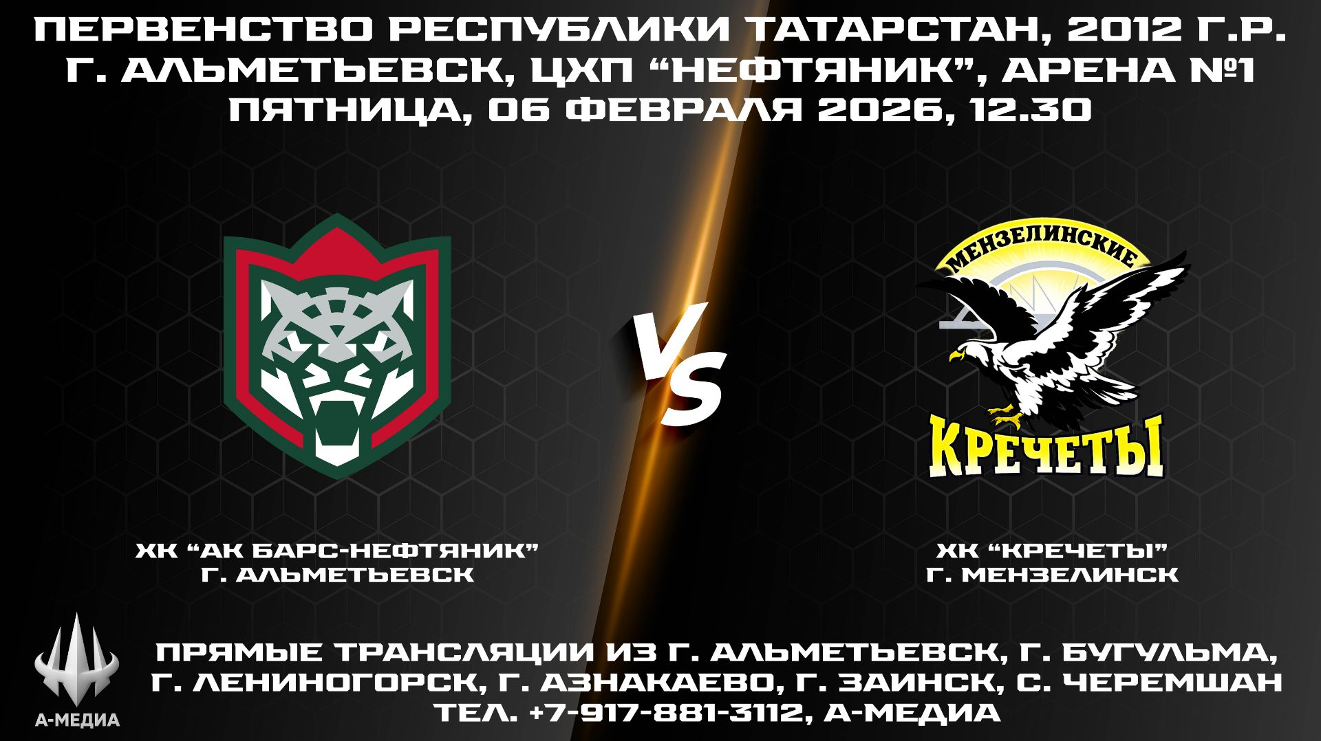 06.02.2026г., ХК "АК БАРС-НЕФТЯНИК" (г. Альметьевск) - ХК "КРЕЧЕТЫ" (г. Мензелинск)