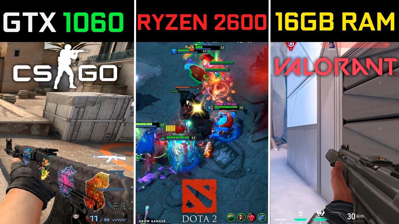 GTX 1060 3GB + Ryzen 5 2600 : Test in CS:GO, VALORANT, DOTA 2