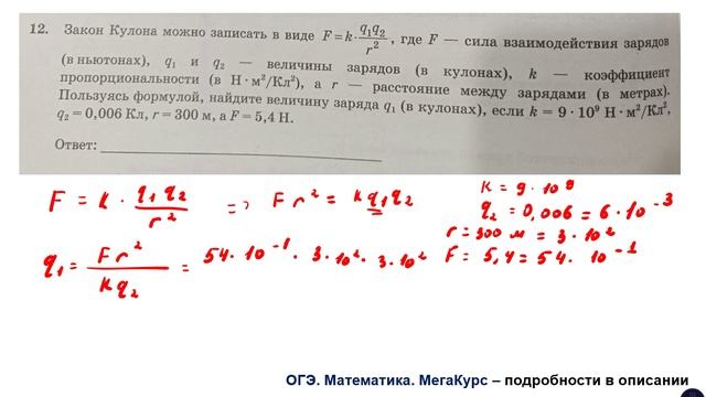 Задание 12. Закон Кулона можно записать в виде... Тема задания - работа с формулами Группа ВК для подготовки к ОГЭ: https://vk.com/secretroom2023 Видеокурс для подготовки к ОГЭ по математике: https://stepik.org/a/193288