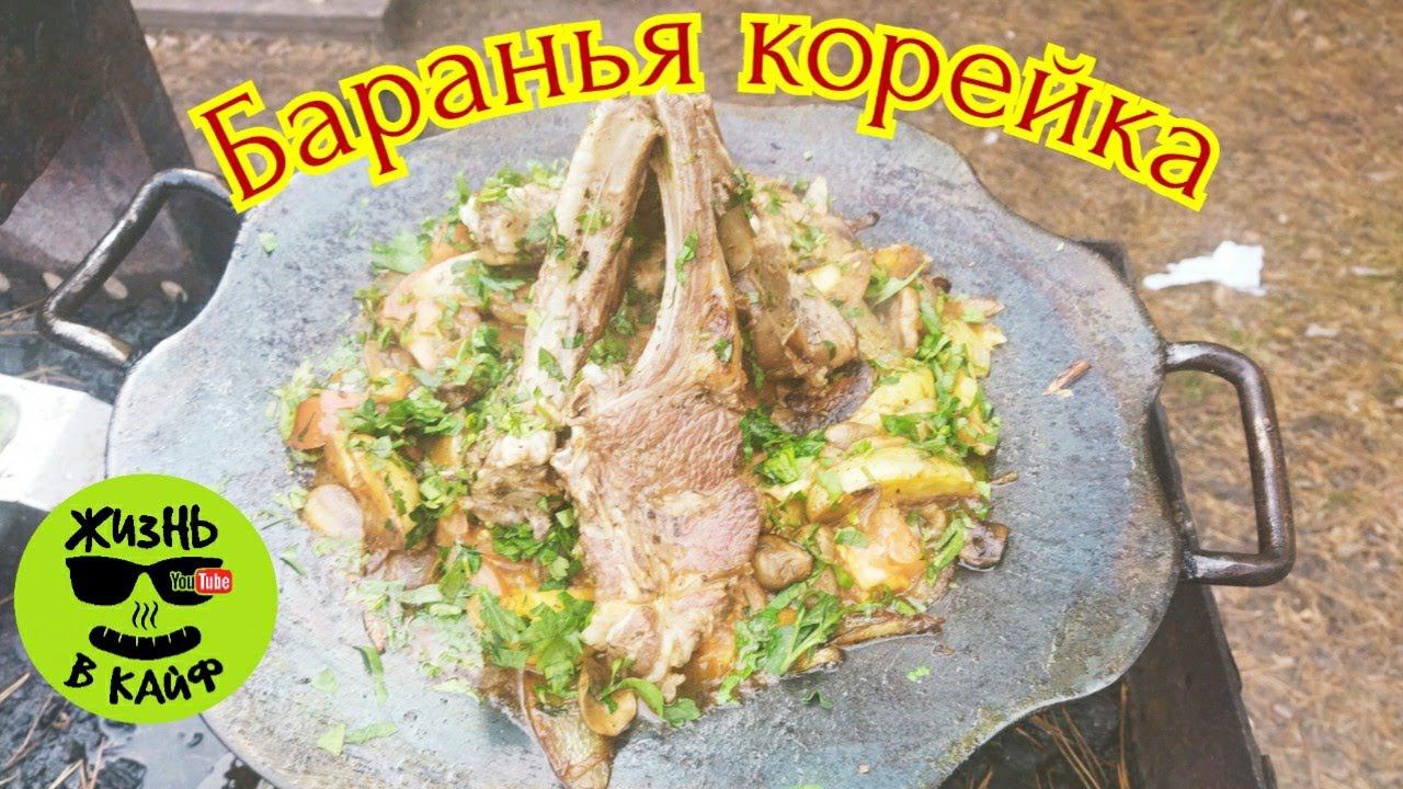 Баранья корейка с овощами на садже из бороны