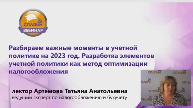 03.07.2023 Вебинар "Разбираем важные моменты в учетной политике на 2023 год. Разработка элементов учетной политики как метод оптимизации налогообложения" (Лектор Артемова Т.А.)