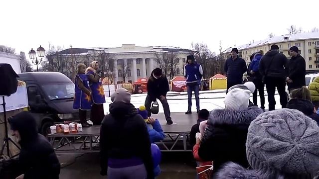 Народные забавы, жим гири на Масленице.mp4