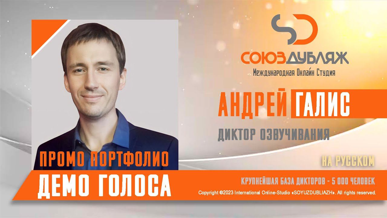 #СоюзДубляж #БазаДикторов #Озвучка ✔️Андрей Галис, диктор озвучивания. Международная Онлайн-Студия "СОЮЗДУБЛЯЖ" - профессиональная озвучка и дубляж. ▪️Рабочая группа в Телеграм: https://t.me/soyuzdubliazh ▪️Контакт для связи: https://t.me/SoyuzAdmin ▪️Подпишись:https://www.youtube.com/c/SOYUZDUBLIAZH ▪️Сайт: https://www.soyuzdubliazh.com/ Лучшие голоса для вашей аудиорекламы и видеороликов. База дикторов - 5 000 человек, профессионального уровня на ENG| FR| TR| RU| ISR| AZ| UA| KZ| UZ| языках. Мужские и Женские топовые голоса для озвучки любых проектов, таких как: Рекламы, Презентации, Фильмы, Сериалы, Игры, Мультфильмы, ТВ Шоу, Аудио-видео визитки. ✔️Сотрудничая с нами вы получаете свой проект под ключ, не выходя из дома или офиса. Наша слаженная команда из лучших дикторов, актёров озвучивания, режиссёров и звукорежиссёров в кратчайшие сроки озвучат или отдублируют ваш заказ на профессиональном уровне. Образцы работ нашего портфолио вы сможете посмотреть на канале СОЮЗДУБЛЯЖ. ВНИМАНИЕ: ✔️Мы приглашаем специалистов озвучки к сотрудничеству в нашей команде. Вы можете пройти по ссылке в наш телеграм канал и связаться с Админом для обсуждения. ✔️Всем заказчикам подобных медиа проектов по озвучки и дубляжу фильмов, сериалов, документалок обращаться непосредственно к Админу Телеграм группы СОЮЗДУБЛЯЖ, пройдя по ссылке: Проходи по ссылке: https://t.me/soyuzdubliazh International Online-Studio SOYUZDUDLIAZH presents a highly professional approach in voice-over and dubbing. ▪️Our working group https://t.me/soyuzdubliazh ▪️Chief manager https://t.me/SoyuzAdmin ▪️Follow https://www.youtube.com/c/SOYUZDUDLIAZH ▪️Web: https://www.soyuzdubliazh.com/ We offer You the best Voices for your Audio commercials and Video`s. Our Database contains over 5 000 voices of native speakers and high-class foreign language specialists in ENG| FR| TR| RU| ISR| AZ| UA| KZ| UZ|. Male & Female top level voices for all the variety of dubbing projects such as commercials, presentations, movies, TV-series, video and computer games, cartoons, TV-shows, audio & video portfolio’s – all in one place. As your business partner we guarantee a turn-key project without you leaving your house or office. Our target is to make sure that the dubbing of your project is made as quick as possible by a well-coordinated and professional team of the best speakers, film and sound directors. To whom it may concern! We invite dubbing specialists to join our team. Please contact our manager on Telegram https://t.me/soyuzdubliazh