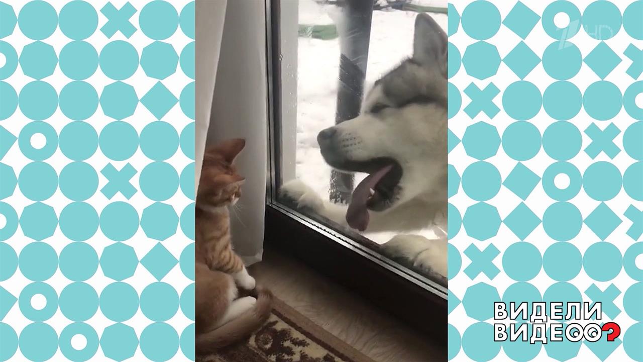 Маламут и кот общаются через стекло. Видели видео? Фрагмент выпуска от 17.10.2021