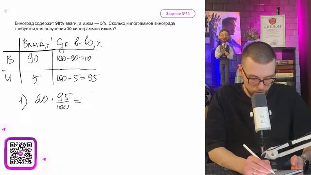 Виноград содержит 90% влаги, а изюм — 5%. Сколько килогра