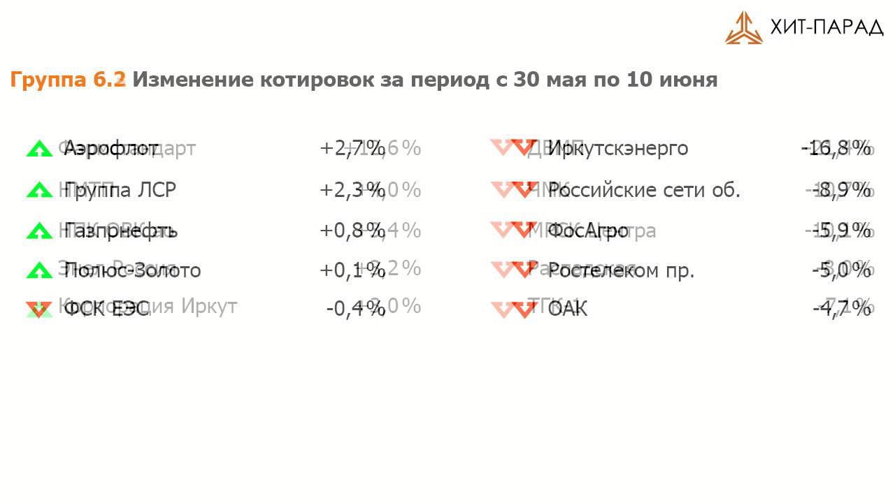 Видеопередача о динамике рынка акций за период с 30 мая по 10 июня 2016. Хит-парад эмитентов на 10 июня 2016 года