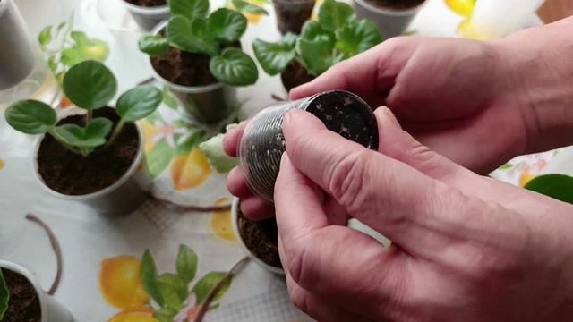Ставлю фиалки на фитильный полив. Упрямо про объём стаканчиков! 😂😂😂