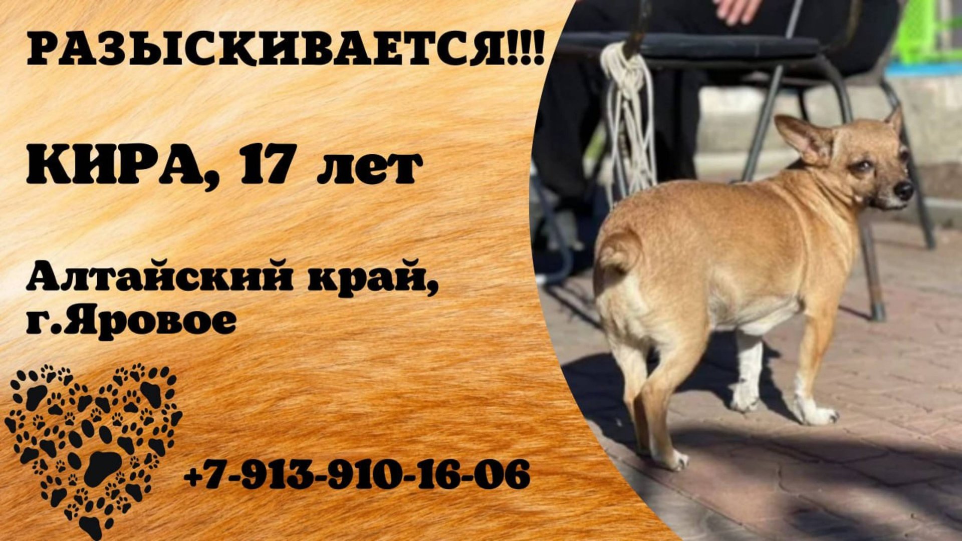 Пропала собака! КИРА. 17 лет. Алтайский край, г. Яровое