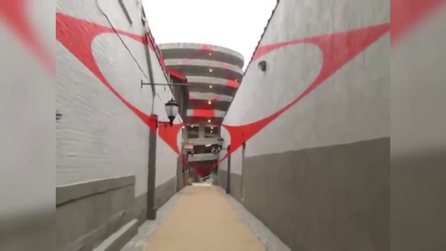 Швейцарский художник Феличе Варини (Felice Varini) раскрасил одно из зданий в американском городе Нью-Хейвен, штат Коннектикут. Разглядеть результат его творения удастся только с определенного места и расстояния.