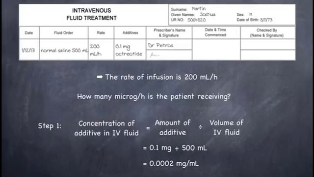 This video will demonstrate the conversion of infusion rates from mL/h to microg/h