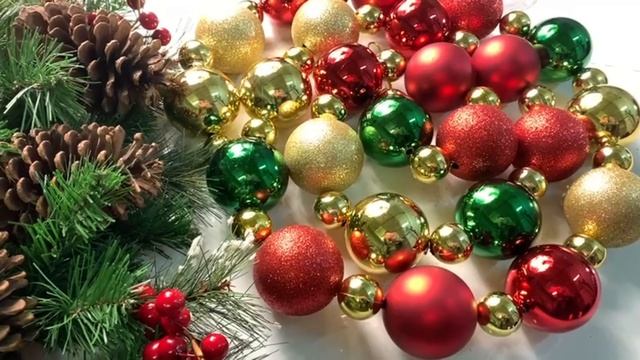 Бусы на ёлку НОВОГОДНЕЕ ОЖЕРЕЛЬЕ, пластик, красный, золотой, зелёный, 3-6 см, 210 см, 3081149