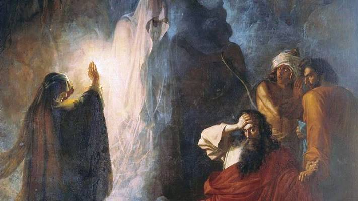 Царь Саул обращается к гадалке, не взирая на запрет Господа Бога. Обращаю внимание на толкование.