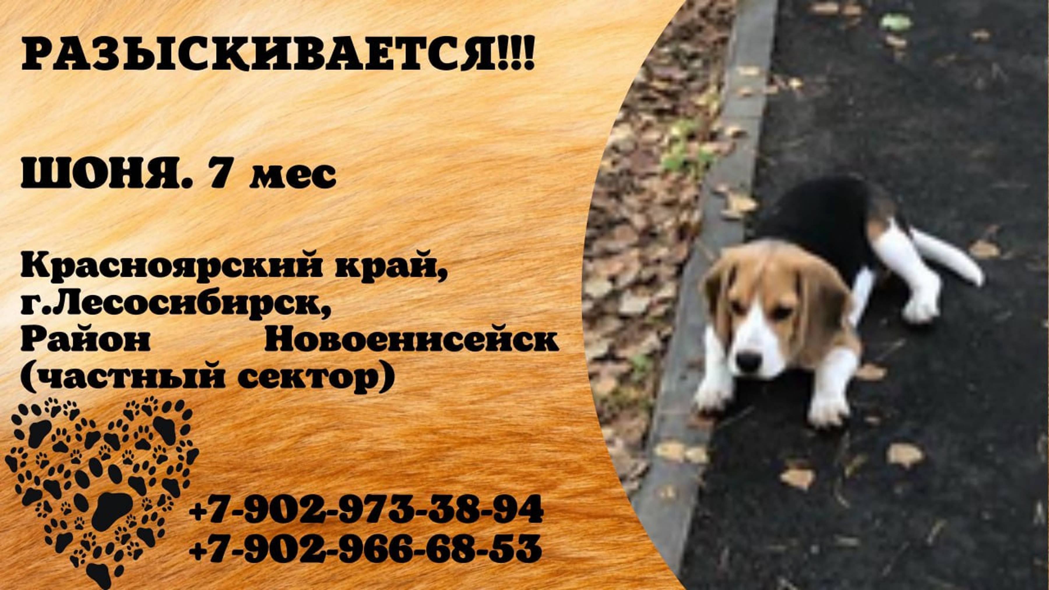 Пропала собака! ШОНЯ. 7 мес. Красноярский край, г. Лесосибирск
