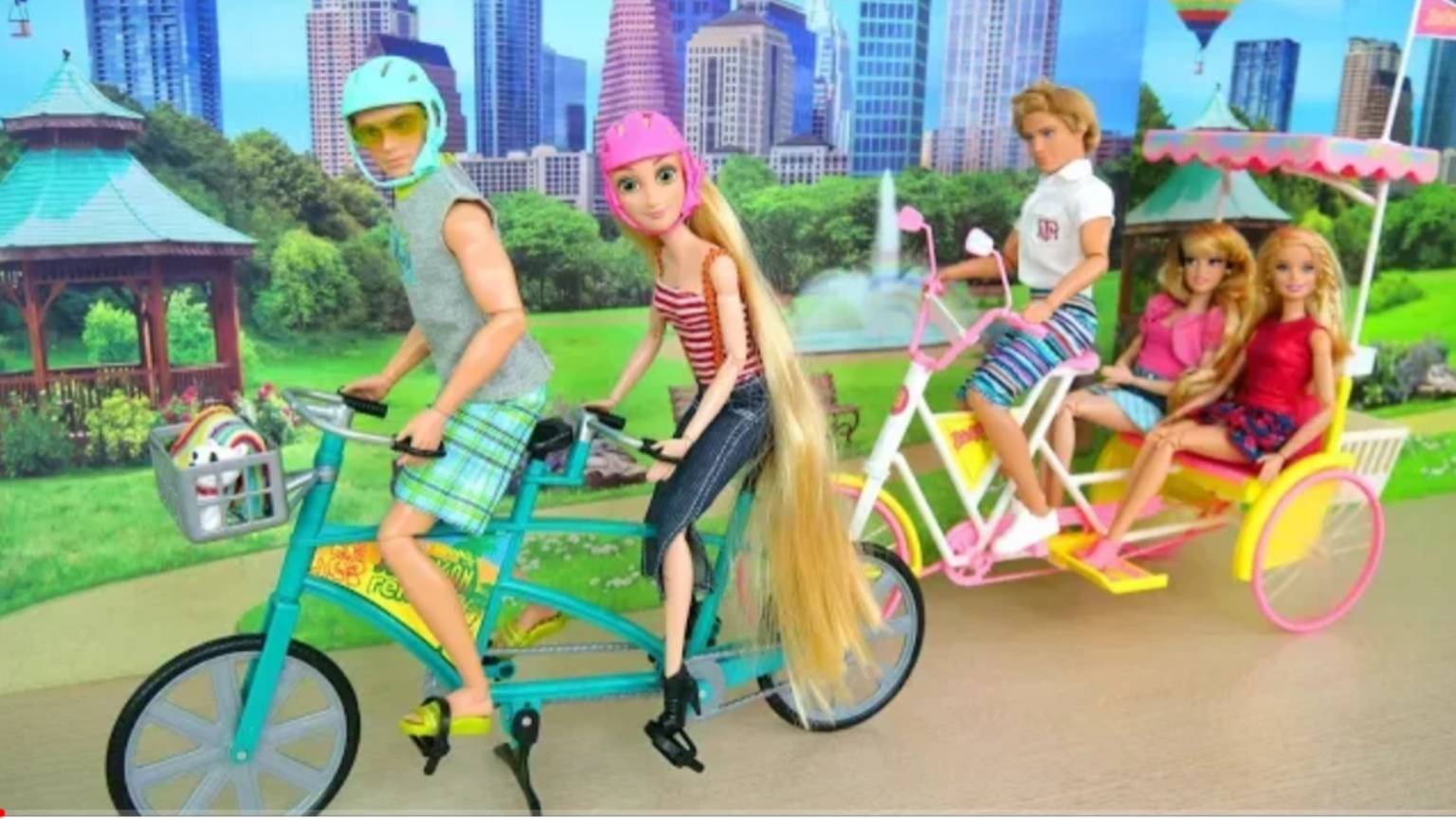 Тандемный велосипед для кукол Барби