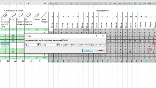 Создание правила условного форматирования - опоздание на занятия