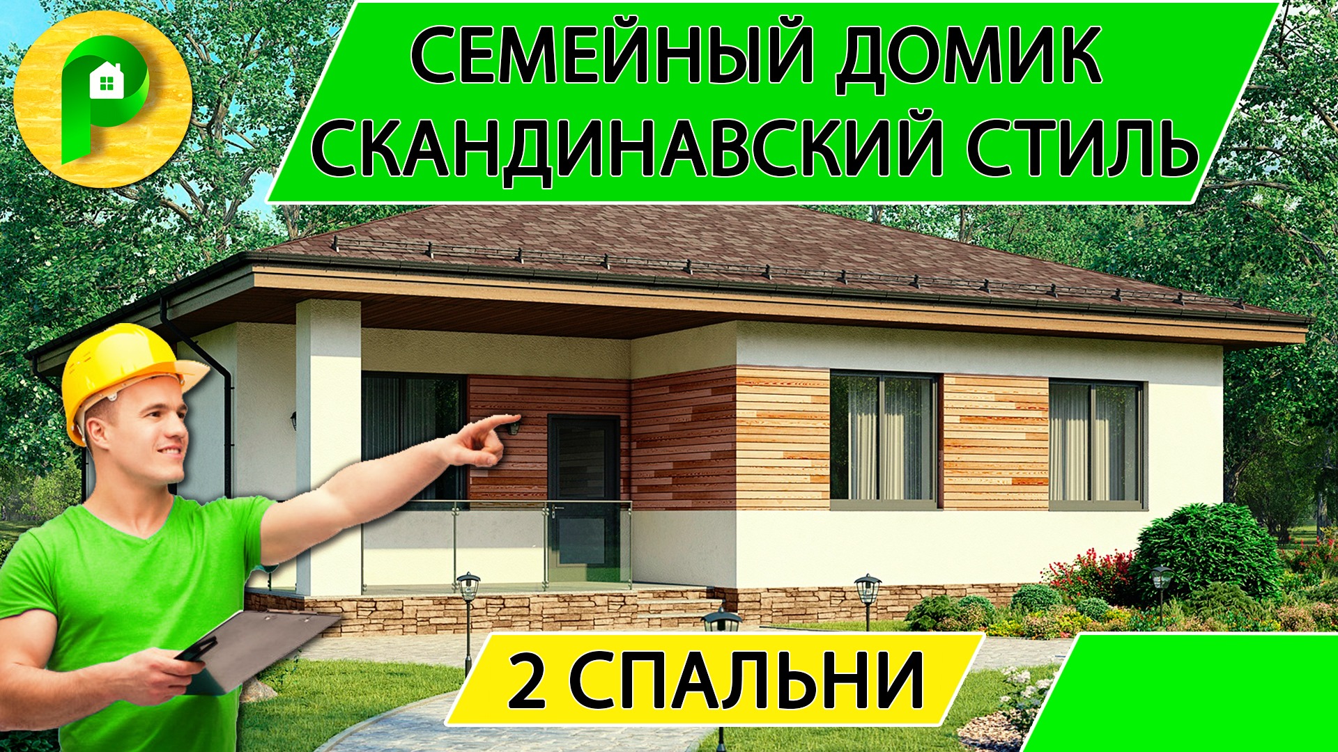 Проект одноэтажного дома в скандинавском стиле из арболита 13 на 13 2 спальни _ Ремстройсервис М 267