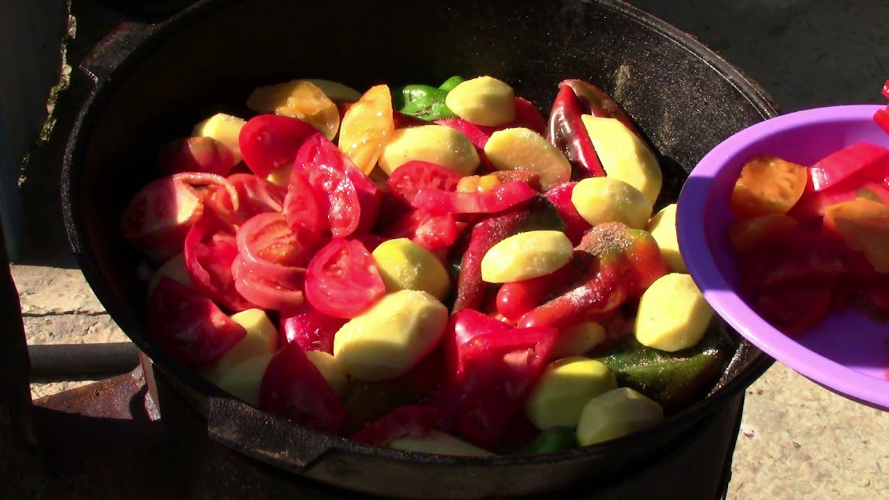 Мясо баранина или говядина - 1. 3 кг(можно смешать, но только не свинина) Курдючный жир Лук - 5 шт. Перец болгарский 4 шт. Баклажан 3 шт. Чеснок 1 головка Картофель 1 кг. Капуста 1 кг. Томаты - 1 кг. Перец острый - 1 шт. Зелень: петрушка, кинза, укроп, базилик Приправы: соль, зира, паприка, кориандр, чесночный перец Ссылка на квашенную капусту и зеленые помидоры: https://youtu.be/GXhuzbJNhns и https://youtu.be/SqHphLQJ6T4