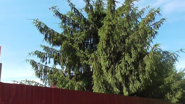 Ель за забором с шишками, ель, шишка