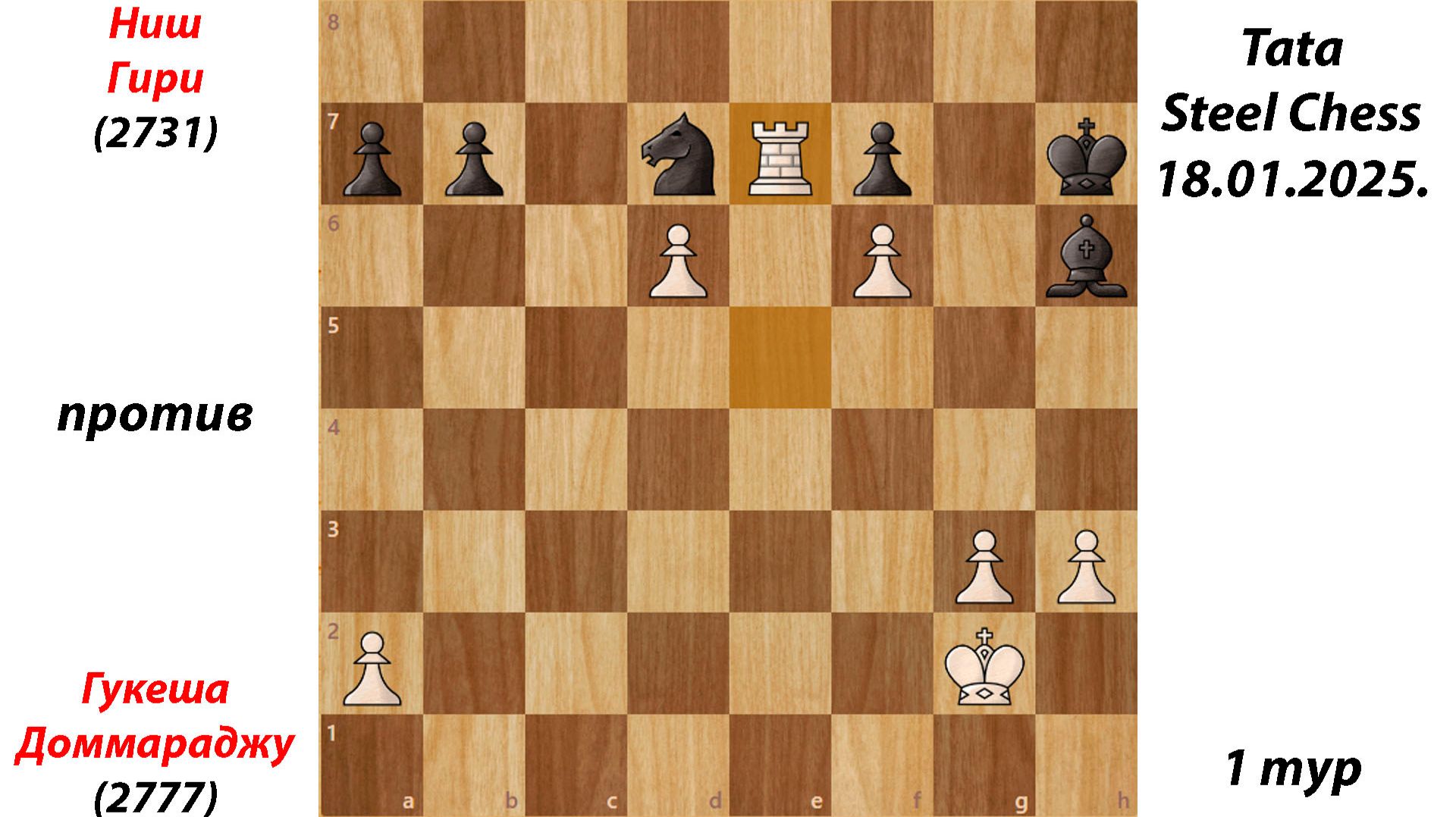 Ниш Гири против Гукеша Доммараджу. Tata Steel Chess 18.01.2025. 1 тур.