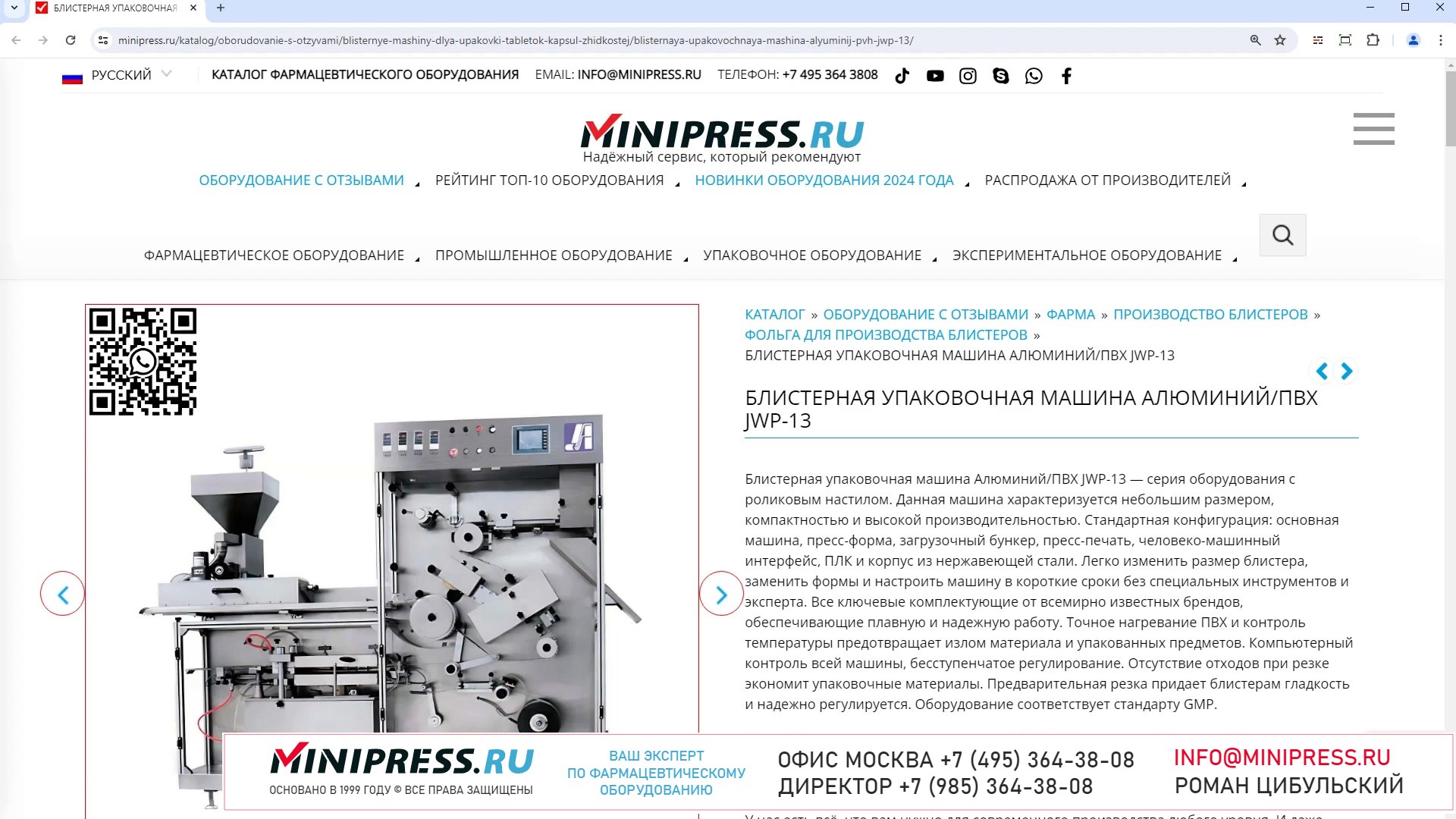 Компания MINIPRESS.RU занимается подбором ГРАНУЛЯТОРОВ ФАРМАЦЕВТИЧЕСКИХ. Мы знаем практически все секреты о влажной и сухой грануляции, моделях грануляторов, о технологии гранулирования порошков, способах сушки гранул и окатывании. У нас в каталоге есть промышленное и лабораторное оборудование для производства гранул, в том числе и в псевдосжиженном кипящем слое. Компания Романа Цибульского MINIPRESS.RU занимается поставкой большого ассортимента фармацевтического оборудования из Китая, Кореи, Индии, Европы и других стран. Мы выполняем работы по поиску, подбору, закупке, доставке, и таможенной очистке оборудования с доставкой в любой город России и стран СНГ. Основатель и ведущий специалист компании - Роман Цибульский. Компания MINIPRESS.RU (зарегистрированный товарный знак) основана в 2000 году. Онлайн каталог оборудования MINIPRESS.RU ежедневно посещают несколько тысяч человек. Мы развиваем крупные каналы в социальных сетях, посвященные тематике фармацевтического оборудования. Вы можете посмотреть видео ролики об оборудовании, которым мы занимаемся. Фактически у нас самый большой в России многоязычный каталог фармацевтического оборудования с фотографиями, описаниями, и что более важно с ценами и видео демонстрацией оборудования в работе. Подбор оборудования и консультации ведет сам владелец компании - Роман Цибульский. Компания имеет огромный опыт в работе с различным оборудованием, технологиями. Помогаем клиентам выбрать модель фармацевтического оборудования, которое сможет решить поставленную задачу. Наши специалисты помогают рекомендациями в решении проблем по эксплуатации оборудования. Наша компания имеет офис в г.Шанхай и несколько менеджеров, которые помогают в работе с китайскими поставщиками. Мы долго сотрудничаем и дружим с этими специалистами. Китайские поставщики ценят нас как постоянных партнеров. Роман Цибульский Директор компании Минипресс Поставка фармацевтического оборудования в Россию Пишите: info@minipress.ru Gmail: boss.minipress@gmail.com Офис в Москве +7(495)364-38-08 Мобильный +7(985)364-38-08 (WhatsApp) Каталог оборудования https://www.Minipress.ru/katalog/ МИНИПРЕСС.РУ В СОЦИАЛЬНЫХ СЕТЯХ FB https://facebook.com/roman.tsibulsky YOUTUBE https://www.youtube.com/@farmacevticheskoe_oborudovanie INSTAGRAM https://www.instagram.com/farmacevticheskoe_oborudovanie/ #марка #минералы #капсулы #фабрика #технолог #измельчение #бутылки #чай #клиенты #маркетинг