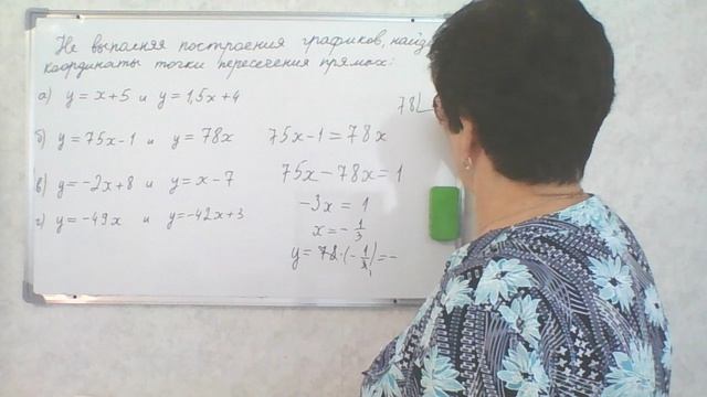 Решение задания 11.13 Алгебра 7 класс А. Г. Мордкович. Не выполняя построения графиков, найдите координаты точки пересечения прямых. Линейная функция.