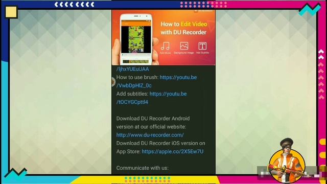 How to download DU Recorder on Android. About DU Recorder: DU Recorder is an app that lets you record a video of whatever is happening in your Android’s screen. The best part is that once you’ve recorded the video you can also edit it using the an editing tool that’s been included in the app. In this video I am going to tell you how to download DU Recorder on Android in step by step easy method. Step 1- Go to YouTube Step 2- Search DU Recorder and open the official channel of DU Recorder. Step 3- Open any video you like and got to it's description Step 4- Scroll down and click Download for Android (if you have Android) or Download for IOS(If you have iPhone). It will redirect you to DU Recorder's Chrome page. Step 5- Click download and install the aap. ENJOY Please like the video if you liked it and Subscribe our channel for awesome content. Edited by- Rudraksha Awasthi