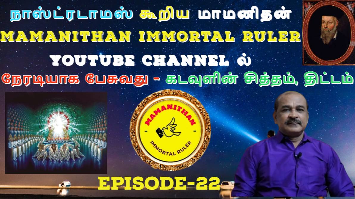 Nostradamus's Mamanithan - Speaking Directly MAMANITHAN IMMORTAL RULER CHANNEL - God's Will, Plan. நாஸ்ட்ரடாமஸ் கூறிய மாமனிதன் - MAMANITHAN IMMORTAL RULER YOUTUBE CHANNELல் நேரடியாக பேசுவது - கடவுளின் சித்தம், திட்டம். #Nostradamuss #Mamanithan #ImmortalRuler #Speaking #Directly #MAMANITHAN #IMMORTAL #RULER #YOUTUBE #CHANNEL #Gods #Will #Plan EPISODE-22 24-02-2025 YOUTUBE CHANNEL - https://www.youtube.com/c/MAMANITHANIMMORTALRULER RUTUBE PAGE - https://rutube.ru/channel/56845761/ FACEBOOK PAGE - https://www.facebook.com/mamanithanimmortalrule/ VKONTAKTE - https://vkvideo.ru/@club229376769 INSTAGRAM PAGE - https://www.instagram.com/mamanithanimmortalruler/ TWITTER X PAGE - https://twitter.com/Mamanithanimr TELEGRAM CHANNEL - https://t.me/+K_xECYoVH6MxM2Jl WHATSAPP CHANNEL - https://whatsapp.com/channel/0029Va5mF5FI1rcgmwJOol1V INTERVIEW WITH NOSTRADAMUS SAID MAMANITHAN: https://rutube.ru/plst/848121 DISEASES WORLDWIDE: https://rutube.ru/plst/848124 MAMANITHAN IMMORTAL RULER LIFE: https://rutube.ru/plst/848119 WORLD WAR: https://rutube.ru/plst/848126