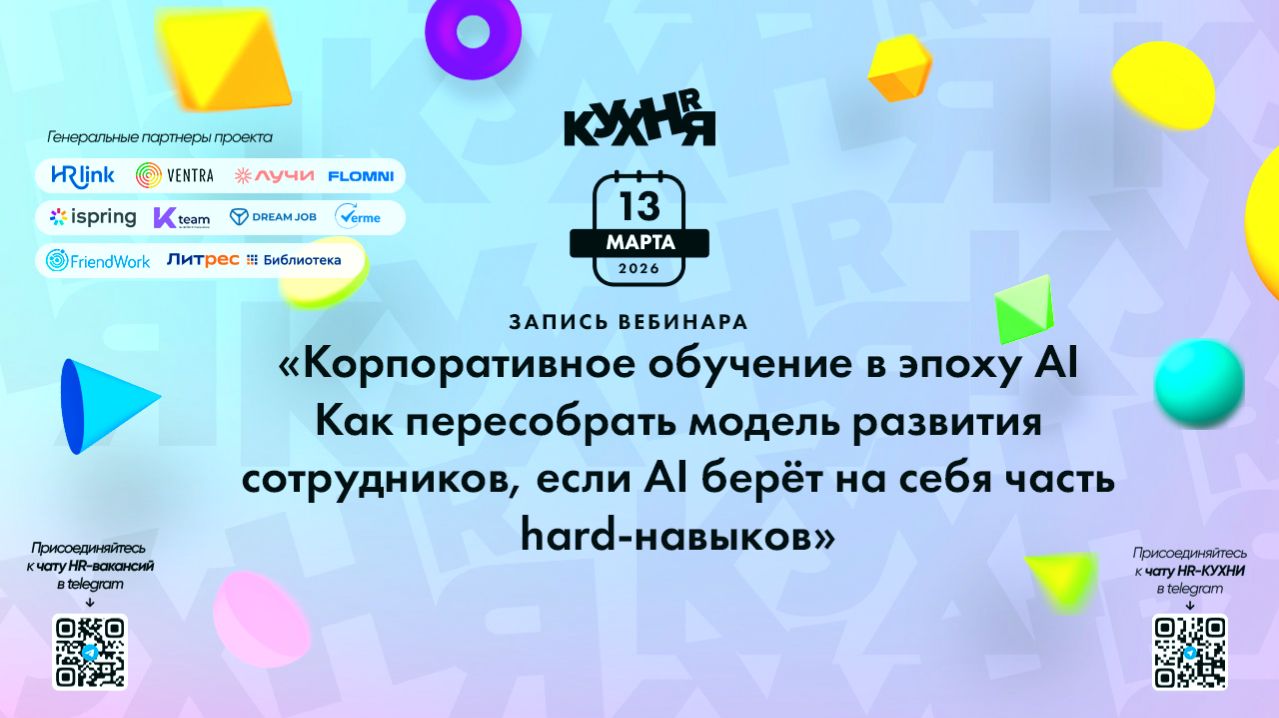 Присоединяйтесь к чатам и каналам HR-КУХНИ в телеграм: - Основной чат HR-КУХНИ в телеграм - https://t.me/+tYgAH0PgPQVkOWIy - Канал HR вакансий в телеграм - https://t.me/+CMNAN2u1hjo3M2Ri - Канал HR-EVENTS в телеграм - https://t.me/hr_kitchen - Канал HR JOURNAL в телеграм - https://t.me/hrkitchenjournal Полезные ссылки: - Каталог HR решений - https://hrkitchen.ru/exhibition - График конференций, бесплатных вебинаров, а также бесплатные курсы – https://hrkitchen.ru/ - Стать спикером HR-КУХНИ - https://hrkitchen.ru/speakers - Подписаться на полезную e-mail рассылку от HR-КУХНИ (новости, гайды, чек-листы, подарки от партнеров) - https://hrkitchen.ru/subscribe