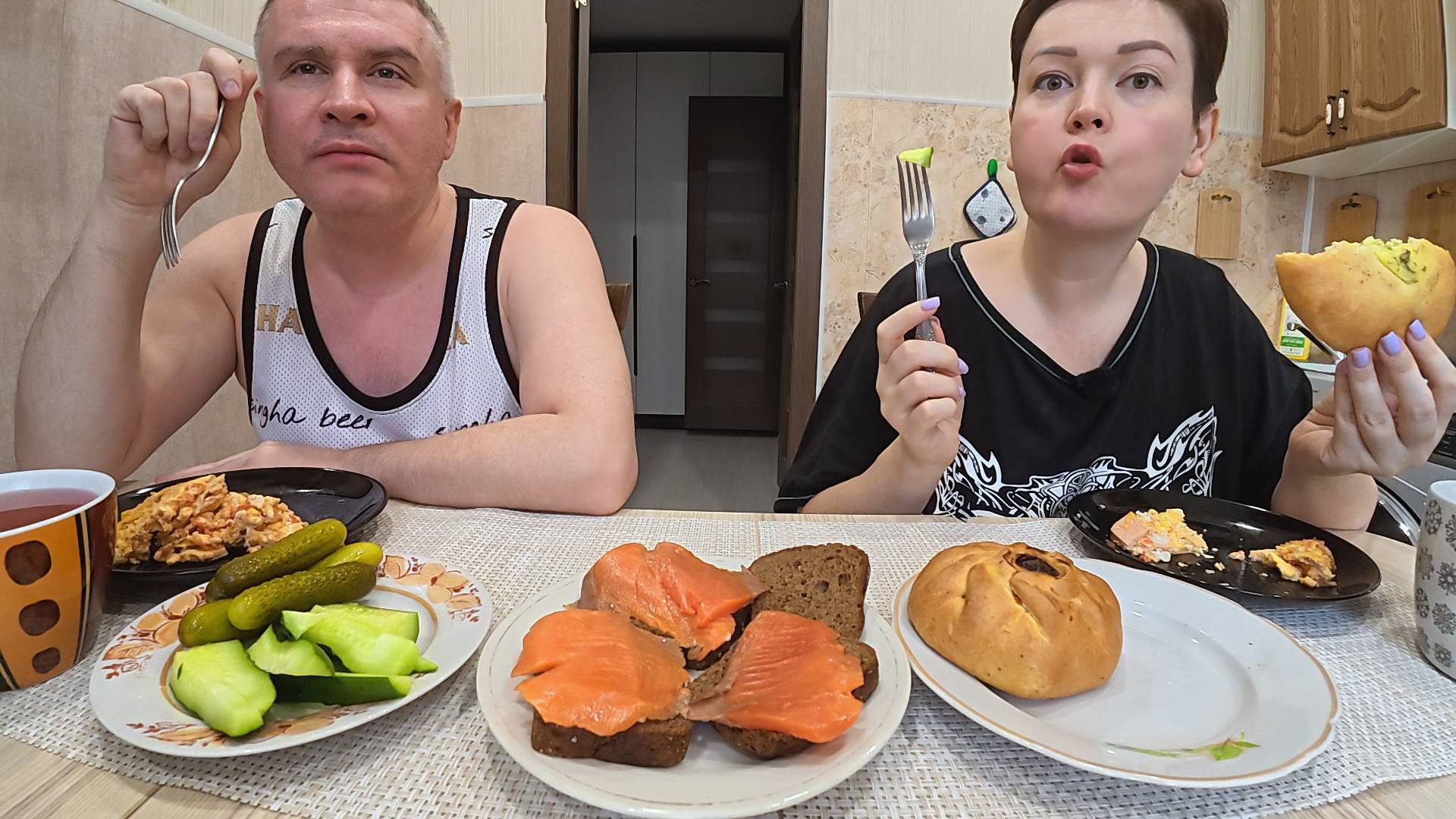 Мукбанг муж в ШОКЕ, ем как с голодного края за ТРОИХ! Аппетит отменный! Семейный обед в России