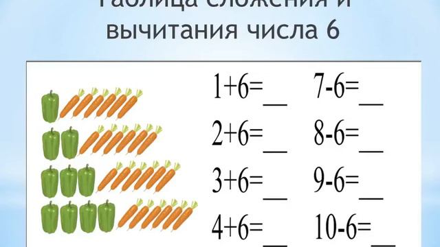сложение числа 6 без перехода через разряд