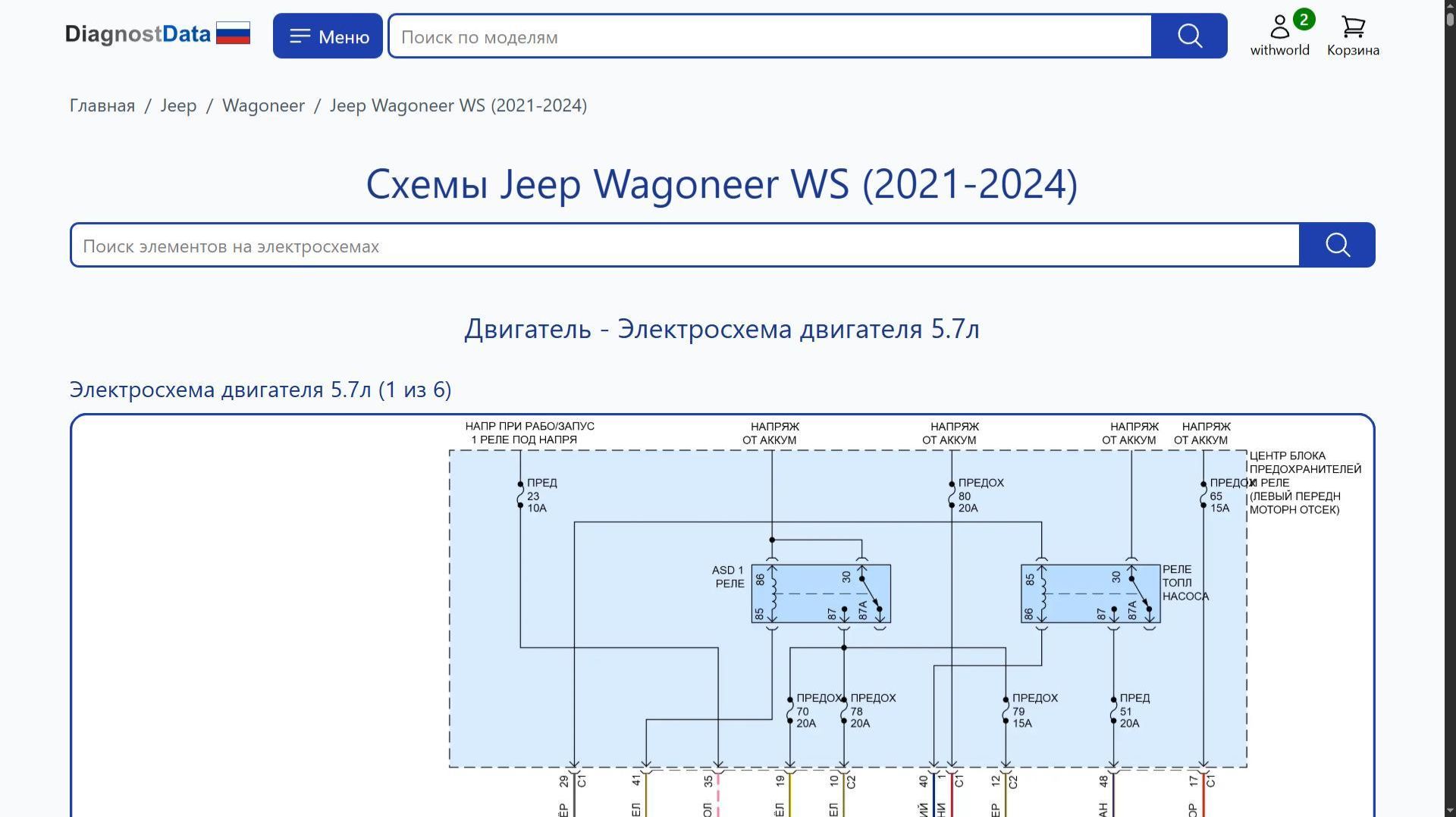 https://diagnostdata.ru/jeep/wagoneer/ws-2021-2024/ Электрохемы, распиновки, схемы электропроводки Jeep Wagoneer WS (2021, 2022, 2023, 2024 годов выпуска) 5.7L Схемы на русском языке для систем: Схемы Двигатель, Схемы Круиз-контроль, Схемы Центральный замок, Схемы Сигнализация, Схемы Системы помощи водителю, Схемы Вентилятор охлаждения, Схемы Складная крыша/люк, Схемы Клаксон, Схемы Магнитола, Схемы Can шина, Схемы Приборная панель, Схемы Коробка передач, Схемы Подушки безопасности, Схемы Фары, Схемы Освещение салона, Схемы Управление зеркалами заднего вида, Схемы Антиблокировочная система abs, Схемы Кондиционирование воздуха, Схемы Стеклоподъемники, Схемы Стартер/генератор, Схемы Память, Схемы Активные управление кузовом и подвеской, Схемы Дворники и омыватели, Схемы Предупреждение, Схемы Блок предохранителей и реле, Схемы Пневматический, Схемы Электронная подвеска, Схемы Сиденья, Схемы Подогрев стекол, Схемы Багажник, задняя дверь, лючок топливного бака, Схемы Фары и фонари, Схемы Электроусилитель руля, Схемы Блокировка селектора, Схемы Блоки управления кузовом, Схемы Точки подключения масс, и др.