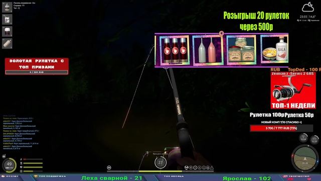 Поддержка донатом https://new.donatepay.ru/@1032463 Альтернативный донат https://www.donationalerts.com/r/kalyamba11 5536913964533059 карта Тинькоф Если стрим лагает,смотри стрим на трово https://trovo.live/s/Kalyamba_na_Ribalke Тг https://t.me/kalyamba_na_ribalke Мой ВК - https://vk.com/kalyantv НИК в игре kalyan11 НАШ ДС https://discord.gg/4ZzSQkQtsK Заказ водоема на 1 час - 500р ( весь стрим 2500р ) Модерка на канале 1300р ( каждая следующая на 100р больше) ✅Призы в рулетке "ЗОЛОТАЯ" 500р ✔ ЗОЛОТО ✔ ПРЕМ ✔ КАТУШКИ РАПТОР 40, ВЕНГИ, ТАЙГА, СИЛЬВЕР 80, И другие ✔ ПАЛКИ ПИЛКЕРНАЯ, ДОНКА МОРСКИЕ, ✔ РОД ПОД, СТУЛЬЯ ✅Призы в рулетке СТАНДАРТ : 100р ✔ катушкИ РАПТОР 40, ВЕНГИ, ТАЙГА, СИЛЬВЕР 80, И другие ✔ катушки 60 для медного ( ЭВИИ, НАТОРЫ, ГОЛДА, и тд) ✔ ПИЛКЕРНОЕ УДИЛИЩЕ КОРОЛЕВА ОКЕАНА ✔ Морское Донное удилище ✔ прем ( 3, 7, 30 дней) ✔ золото ( 1, 3, 5, 10, 20 ,50) ✔ билет на море ( 1, 3, 5 дней) ✔ голд наживка и др. ✅Призы в рулетке "СТАРТОВАЯ" 50р ✔ катушка Венга ✔ катушка "silver80" ✔ катушка "БЕЛЫЙ КАЛИБР" ✔ катушка "Черный калибр" ✔ катушка "Протон" ✔ катушка "Нарга 6000" ✔ Набор Фидерист и спинингист ✔ Карповик Фортуна ✔ фидерные удилища ✔ прем, золото, алкашка, наживки и тд P.s Рулетка это не казино, а награда за поддержку стримера. Вечный ТОП ПОДДЕРЖКИ (10.06.2025) 1. Леха сварной 214 572 2. Dimon_pokemonchik 127 034 3. Skreb79 103 061 4. Interceptor 96 230 5. FishRus86 82 500