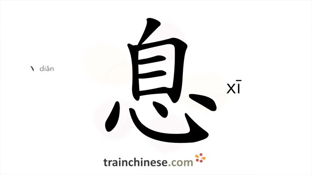 息 (xī) to rest; news; breath / дышать *давать себе отдых *прекращаться; затихать