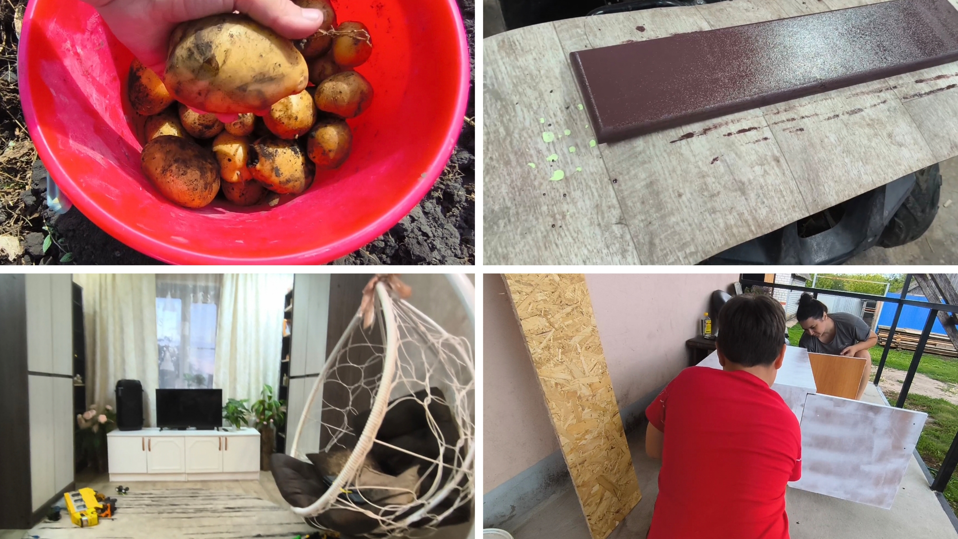 Крашу тумбочки, копаю картошку.