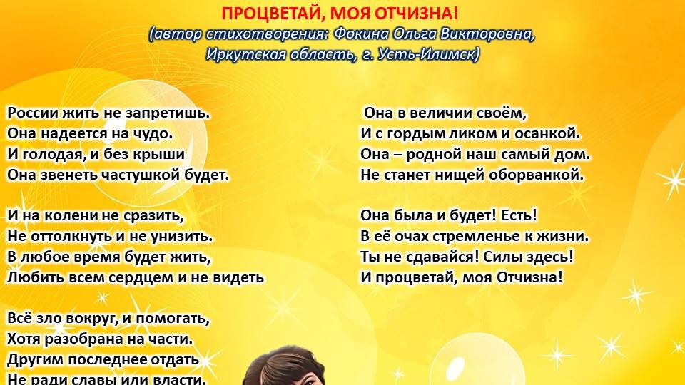 Ольга Фокина (Усть-Илимск) - ПРОЦВЕТАЙ, МОЯ ОТЧИЗНА (читает автор)