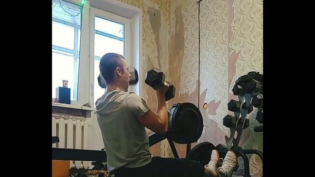 Жим гантелей сидя на полу поочередно
