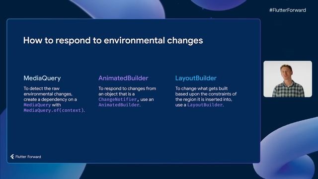 Ideas for generating adaptive user interfaces using Flutter’s widgets and APIs based on our experience of building adaptivity into Flutter itself, and some new additions to Flutter's APIs that can help create great adaptive user interfaces. Speakers: Greg Spencer, Justin McCandless Resources: 3:28 - Slide 19 → https://goo.gle/3DgXuiu 3:43 - Slides 20-23 → https://goo.gle/3WDuh7W 5:04 - Slides 24-28 → https://goo.gle/3DgxovM 6:59 - Slide 33 → https://goo.gle/3HvLT1p 8:28 - Slide 39 → https://goo.gle/3WwDAqo 9:18 - Slides 40-48 → https://goo.gle/3R2CWQo 10:37 - Slides 49-54 → https://goo.gle/3XCB03z 12:24 - Slides 59-64 → https://goo.gle/3JdvDDo 13:56 - Slides 65-70 → https://goo.gle/3H8bRXn 14:48 - Slide 71 → https://goo.gle/3DeoRJL 15:16 - Slide 72 → https://goo.gle/3DdxrbM Watch more: Watch all the sessions → https://goo.gle/FlutterForwardYT Subscribe to Flutter → http://goo.gle/FlutterYT #FlutterForward